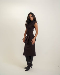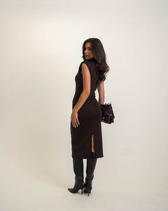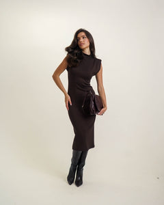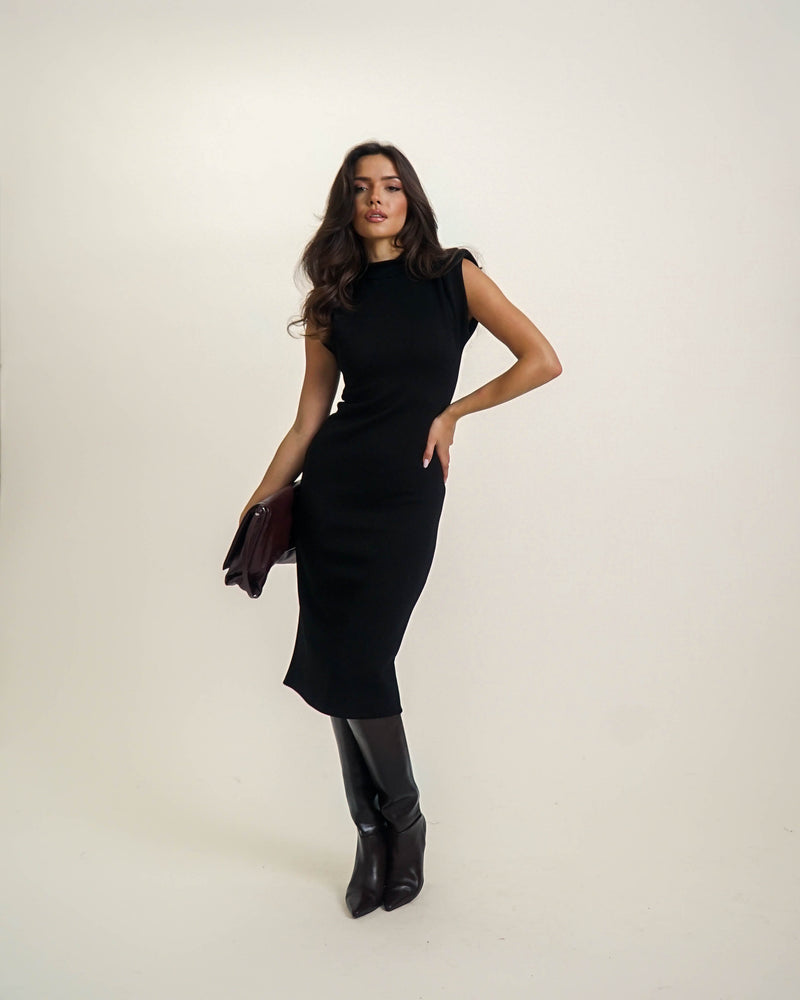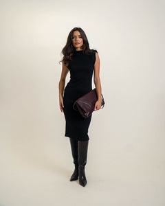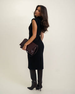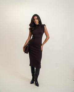DOPASOWANA SUKIENKA MIDI Z PODUSZKAMI NA RAMIONACH